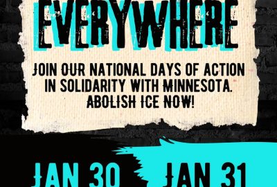 Saturday, January 31st there is a nationwide call to hit the streets and make noise : ICE OUT OF EVERYWHERE. Join a protest (or be one), chalk sidewalks, or decorate your car windows with “ICE OUT” messages. Make it loud!