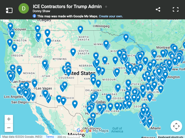 Sludge is a media group that reports by following the money. They’ve built a google map with companies that have new (or updated) contracts with ICE since Trump’s second inauguration. Find local contractors and contact them: